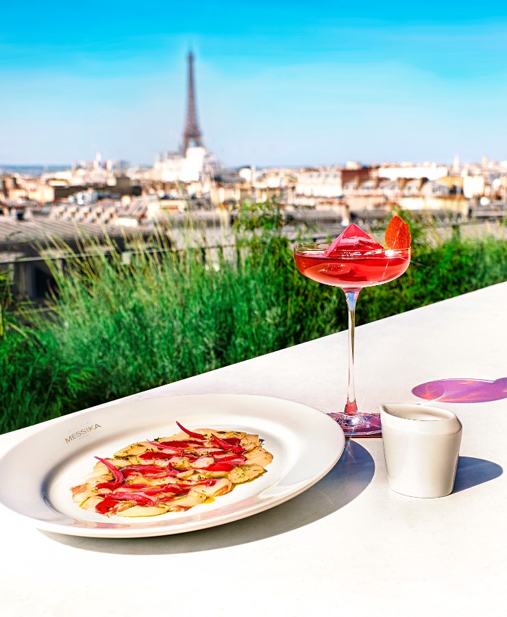 Merve Kockesen captures the chill and inviting vibe of the terrace, emphasizing the assortment of cocktails and the delightful view, making it an ideal place to unwind after a day of exploring the magical city of Paris.
